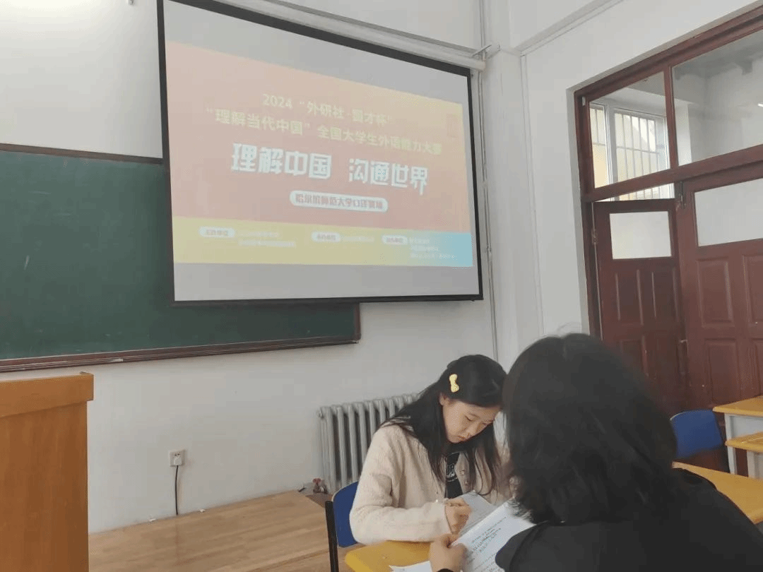 讲座结束后,口译校选赛随即进行。本次校选赛紧扣2024年外研社系列赛事的主题,选取了与国内时政相关的题材,考查选手的英汉和汉英视译能力。入围省赛名单将于近日公布