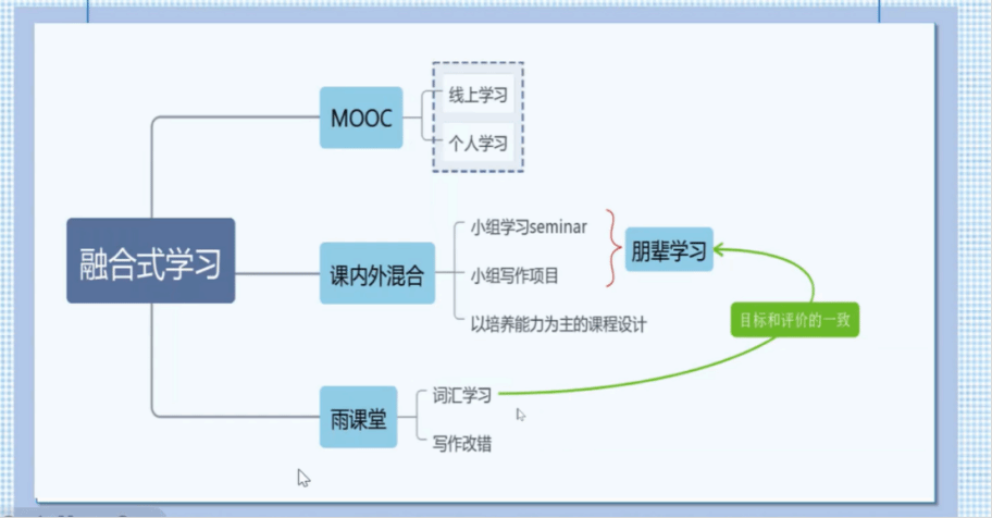 杨芳副教授从听说课程、读写课程、备课和测试四个方面具体阐述了AI在英语教学中的应用,介绍了基于慕课平台的融合式学习形式,即学生开学前观看教学视频;学期中开展小组学习会议;学期末完成雨课堂测试,以促进学生的自主学习与自我调节。杨老师还介绍了在读写教学中应搭建教学支架,调整难度和策略,运用AI制作思维导图对知识进行梳理。