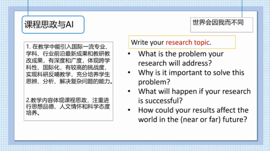 杨芳副教授认为,教师对AI的到来要抱有开放的心态,AI辅助教学有其独特优势,可以帮助教师备课和测试,让师生感受到彼此的成长。同时,杨老师也指出AI助教无法替代教师的人文关怀。此外,杨老师还分享了本人主持的三门国家级本科一流线上课程的申报过程和撰写要点,鼓励老师尝试将教学成果进行凝练和提升。