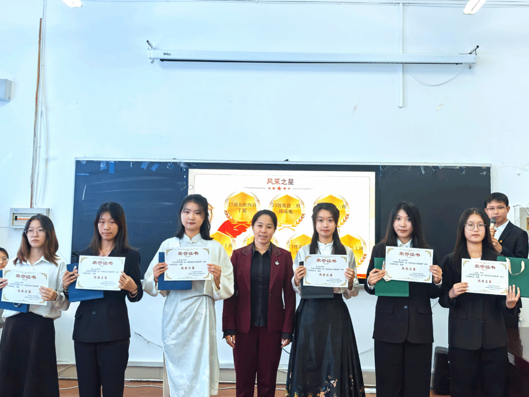 此次表彰大会中,23级翻译二班杨梦熙、23级英教七班付璐、22级英教九班韩玥、23级西班牙语二班王春艳、23级英教十班莫敏等同学用流利的外语,讲述了他们心中的中国故事。这些故事既有对中华五千年文明智慧的赞颂,也有对革命烈士抛头颅洒热血的钦佩,还有对祖国大好河山的热爱和对中华文化的理解。这些演讲不仅展示了他们的语言才华,更传递了对中国文化的热爱和传承。