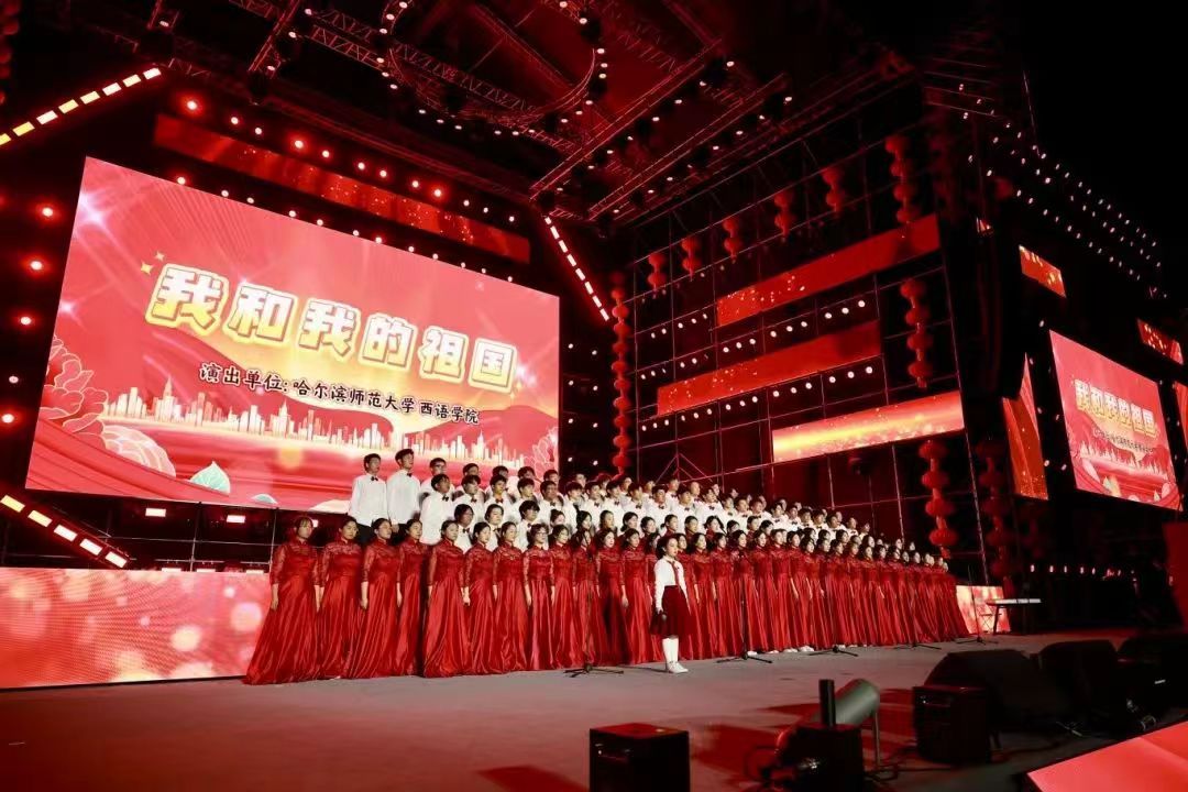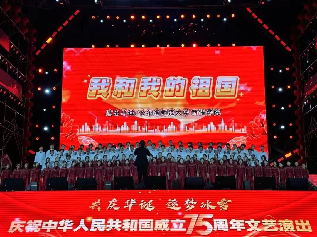 2024年10月1日18:30,“共庆华诞,筑梦冰雪”—庆祝中华人民共和国成立七十五周年文艺演出于冰雪大世界举办,西语合唱团受邀倾情献唱歌曲——《我和我的祖国》。