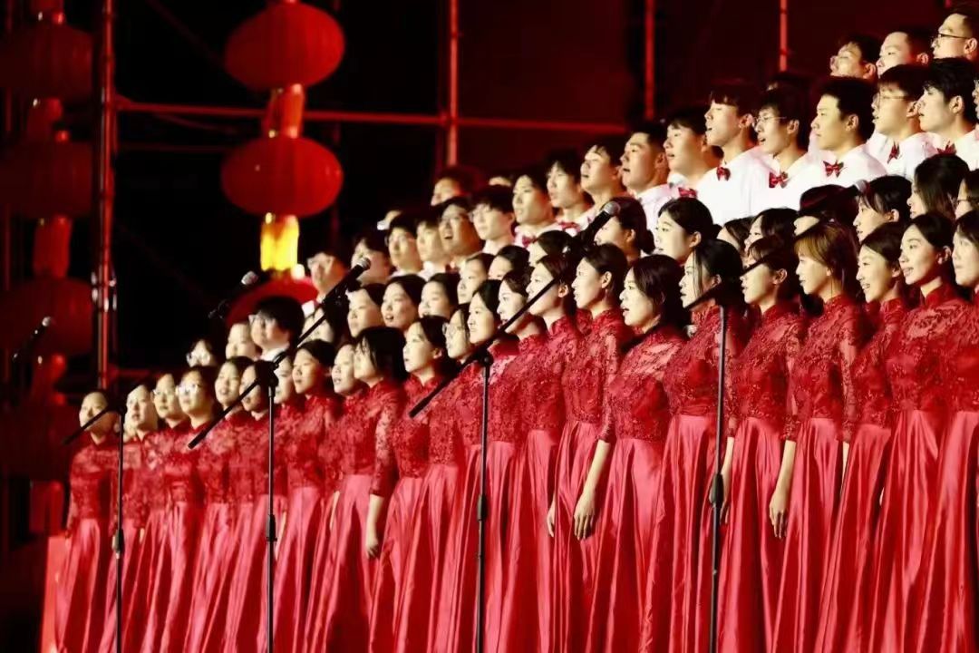 的百余名同学参加本次合唱,他们为祖国献礼,为观众带来一场精彩的音乐盛宴,用嘹亮的的歌声,歌颂祖国华章,讴歌着奋进的时代,悦动的音符赞美着伟大的祖国母亲,精彩的演唱、悦耳的和声与真挚的情感流露感染着现场观众,赢得阵阵掌声和喝彩,一曲激荡人心的旋律,见证了伟大祖国75载筚路蓝缕、砥砺前行。