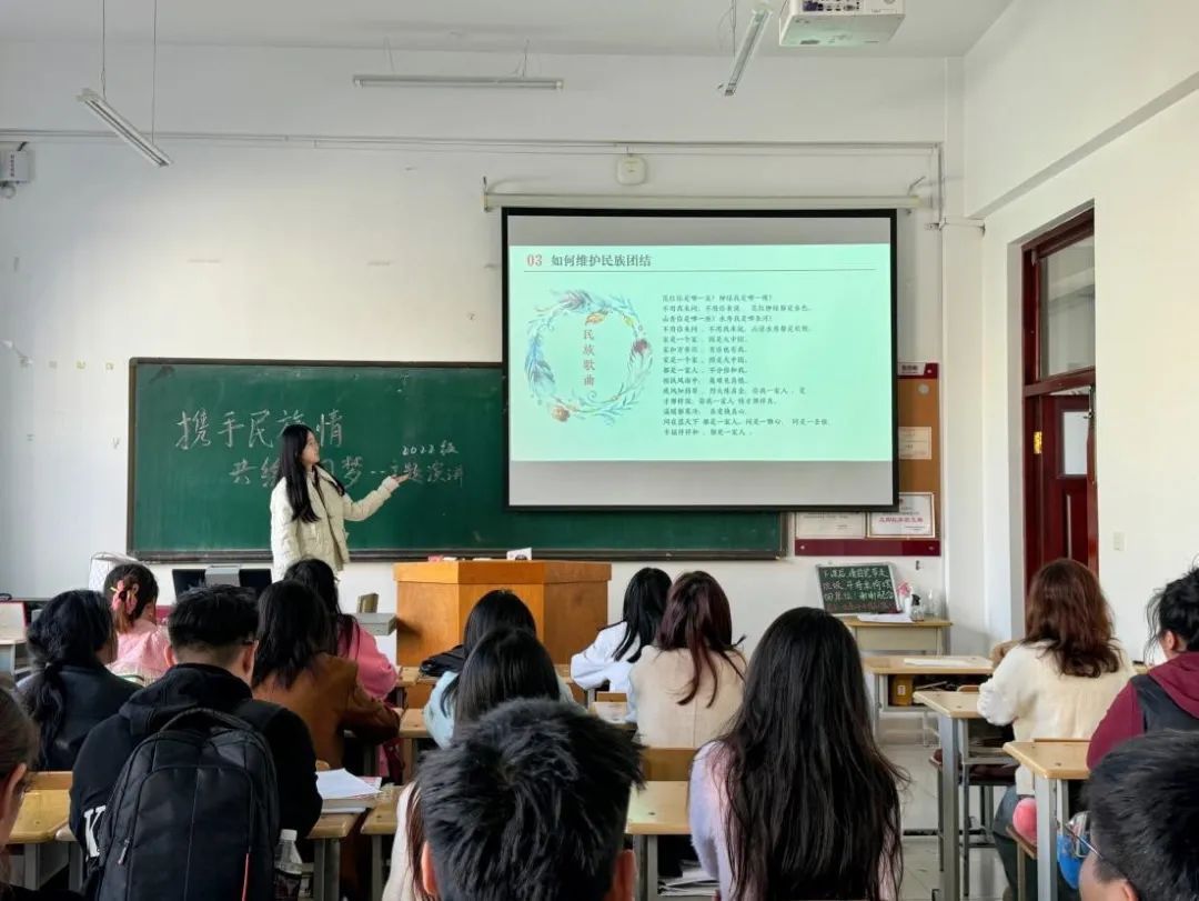 随后,同学们通过视频资料、图片展示以及深情并茂的讲述,将那些在不同领域为促进民族团结作出杰出贡献的楷模故事娓娓道来。这些真实而动人的事迹,深深触动了每一西语学子,让大家深切感受到民族团结的力量和美好。