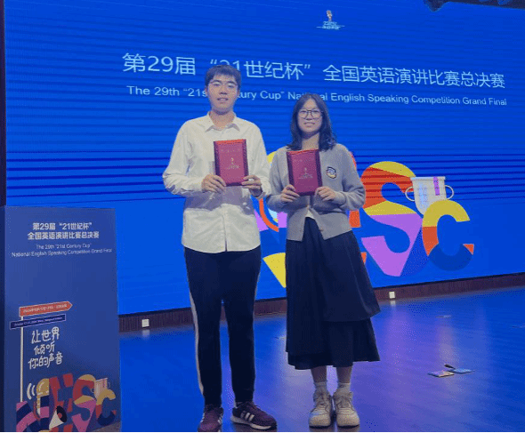 在刚刚落幕的第29届中国日报社“21世纪杯”全国英语演讲比赛全国总决赛中,我院英语教育系2022级8班的蒋逸菲同学和7班的霍毅同学,在英语教育系吴昊晨老师的带领下,以卓越的表现荣获全国总决赛三等奖。