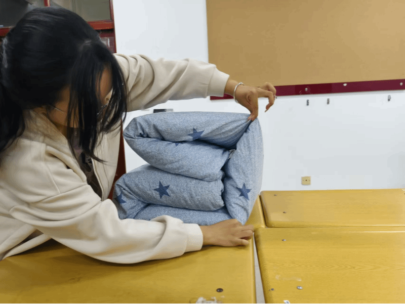 正式进入上半场比赛,前8名成功闯入决赛的选手们表现精彩,在比赛过程中,精心整理床铺和衣服,巧妙利用空间,展现出了卓绝的专注力与高效的执行力。举手示意完成后,选手们站在自己精心整理的物品前,脸上绽放着满足的笑容,彰显出西语学子热情积极的精神面貌。